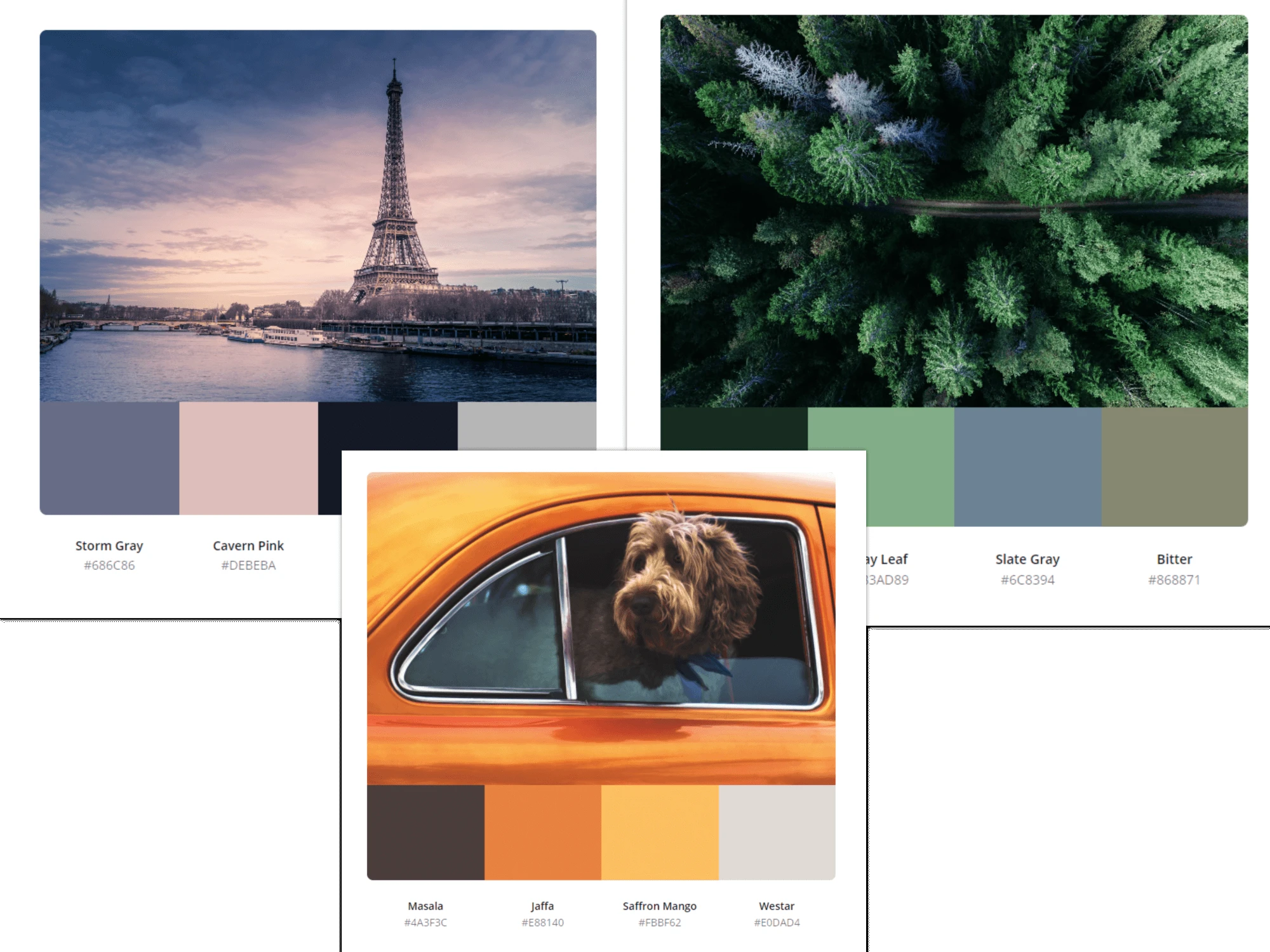 De meeste webdesigners nemen de huisstijl van een onderneming als uitgangspunt en zoeken daarna foto’s die passen in dit kleurenpalet. Je kunt het natuurlijk ook omdraaien: begin met een kick-ass foto en baseer hier de kleuren van je website op. Met Canva’s color palette generator upload je simpelweg een foto en heb je binnen twee seconden een bijpassend kleurenpalet van circa 4 kleuren.